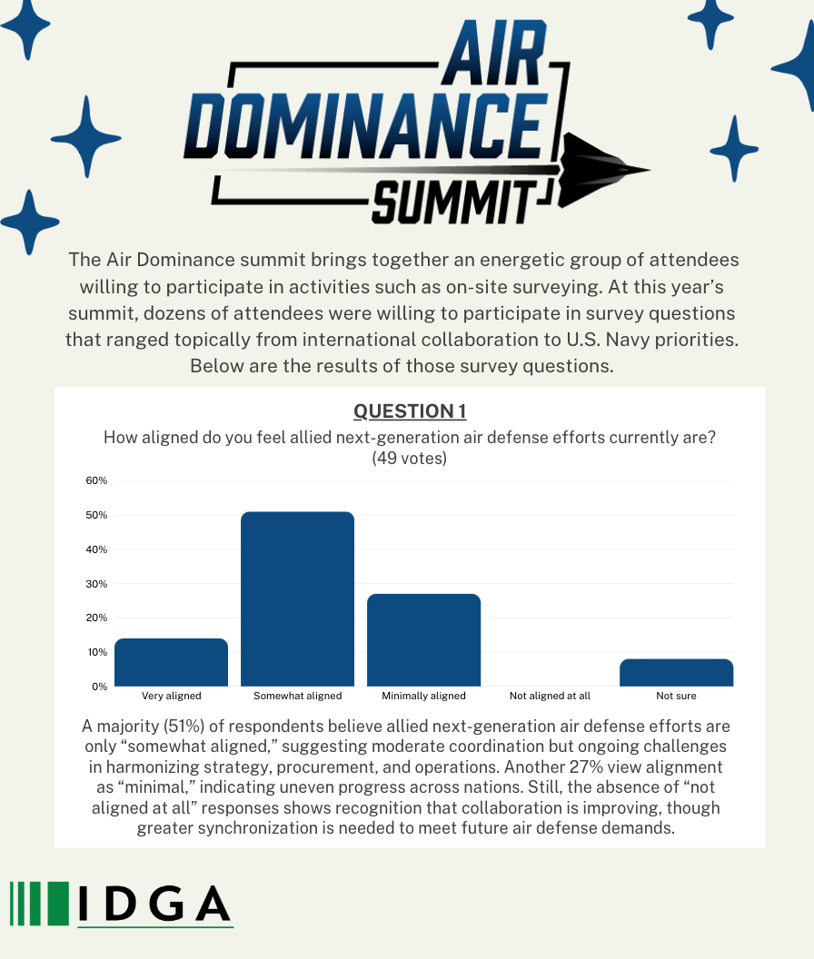 Throughout the event, attendees were urged to participate in live polling to analyze the air superiority efforts of the U.S. Armed Forces. The following infographic displays how attendees responded to topics such as the U.S. Navy's air capabilities, the alignment of ongoing air defense efforts, and more. In 2026, Air Dominance will return to Henderson, Nevada, for the summit's 4th iteration.