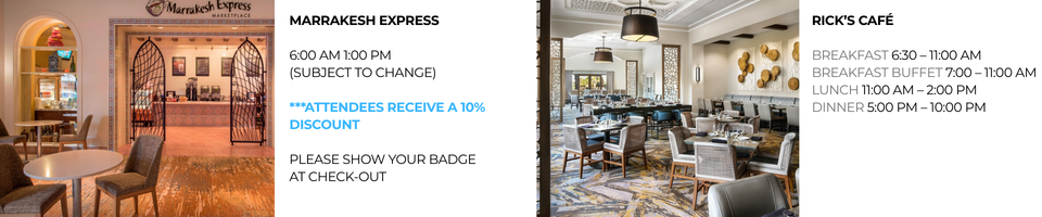 Below is a concise overview of key facility operating hours and dining options available throughout the summit, enabling you to plan strategically and optimize your time both inside and outside the conference environment.